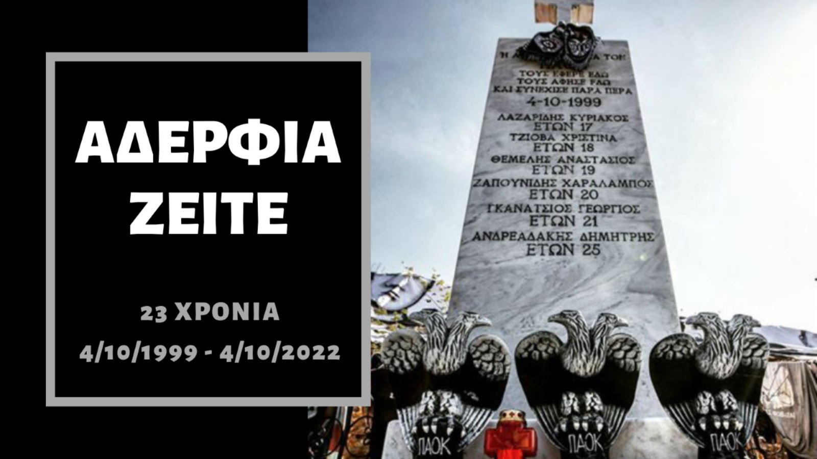 Έχουν περάσει 23 χρόνια από εκείνη την αποφράδα μέρα. Κι όμως μοιάζει σαν χθες. Η μνήμη κάθε χρόνο γίνεται όλο και πιο δυνατή. Τα έξι...