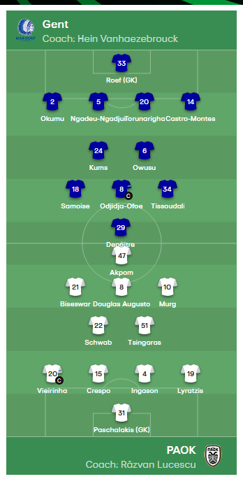 Our starting XI for tonight's big game against @PAOK_FC! ????⚪ #COBW #gntpaok #UECL pic.twitter.com/vjhqAqGo9m
