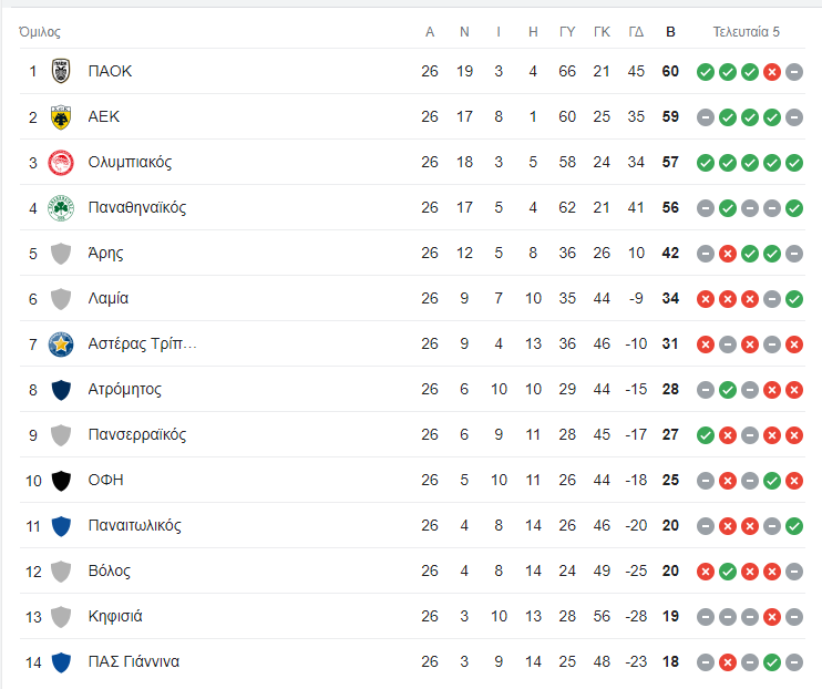 Η βαθμολογία της τελευταίας αγωνιστικής